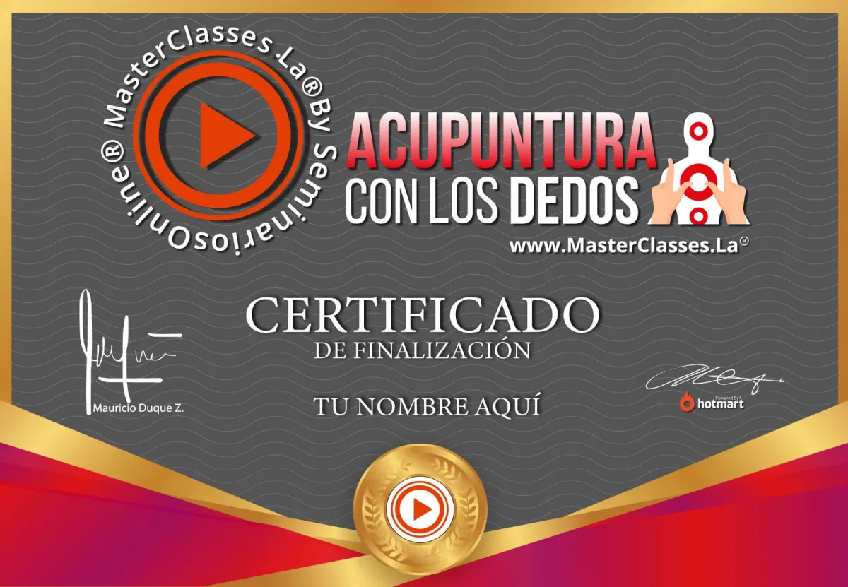 Este certificado demuestra que concluiste el entrenamiento de "Acupuntura con los Dedos"